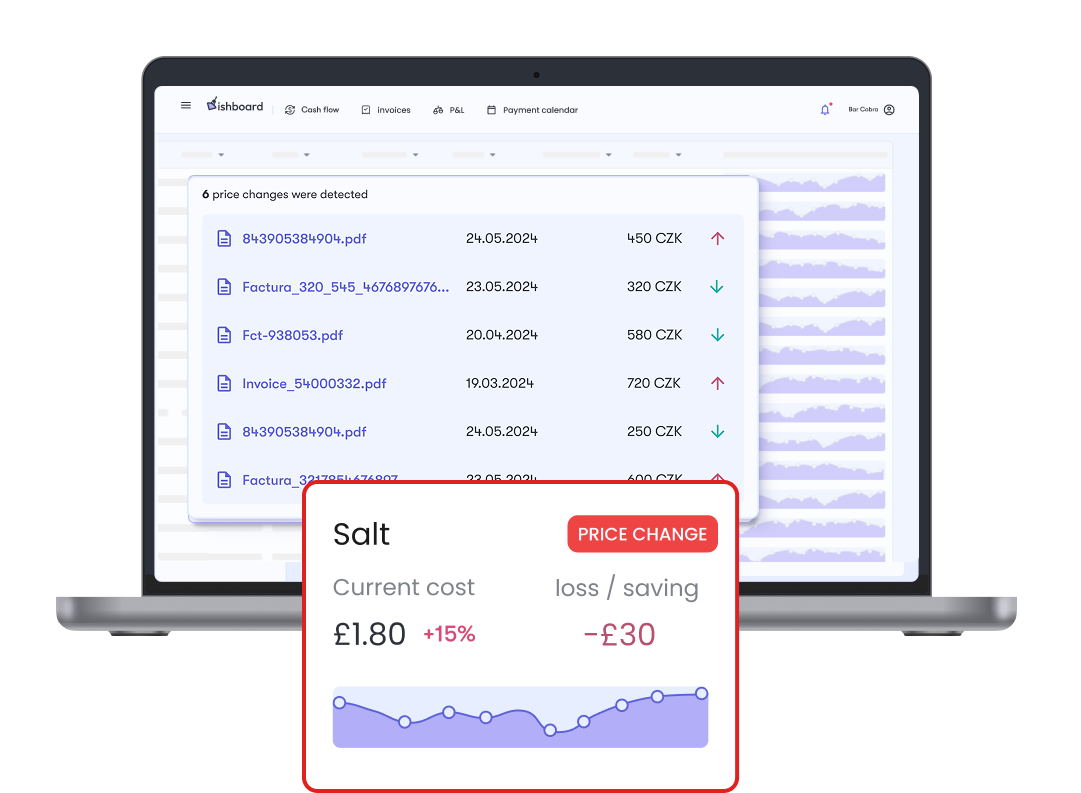 There are tools (such as Dishboard) where you can simply upload your invoices from the past few weeks. In just a few moments, the tool reveals where prices are slowly but steadily rising, highlights expenses you may be paying unnecessarily, and shows where savings could still be made.