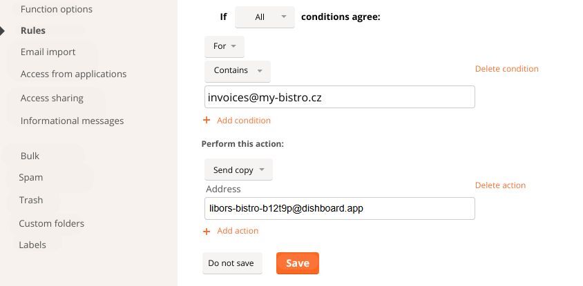 Invoices will then go directly into the system for immediate processing. How to do it: In Dishboard, under the Invoices section, you'll find a unique email address specific to your account. All invoices sent to this email are automatically processed, entered into the system with data extraction, and the due date is recorded in the calendar with a reminder.